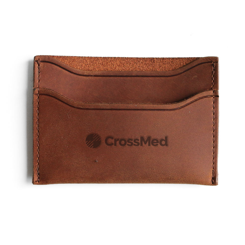 Full grain leather card holder debossed